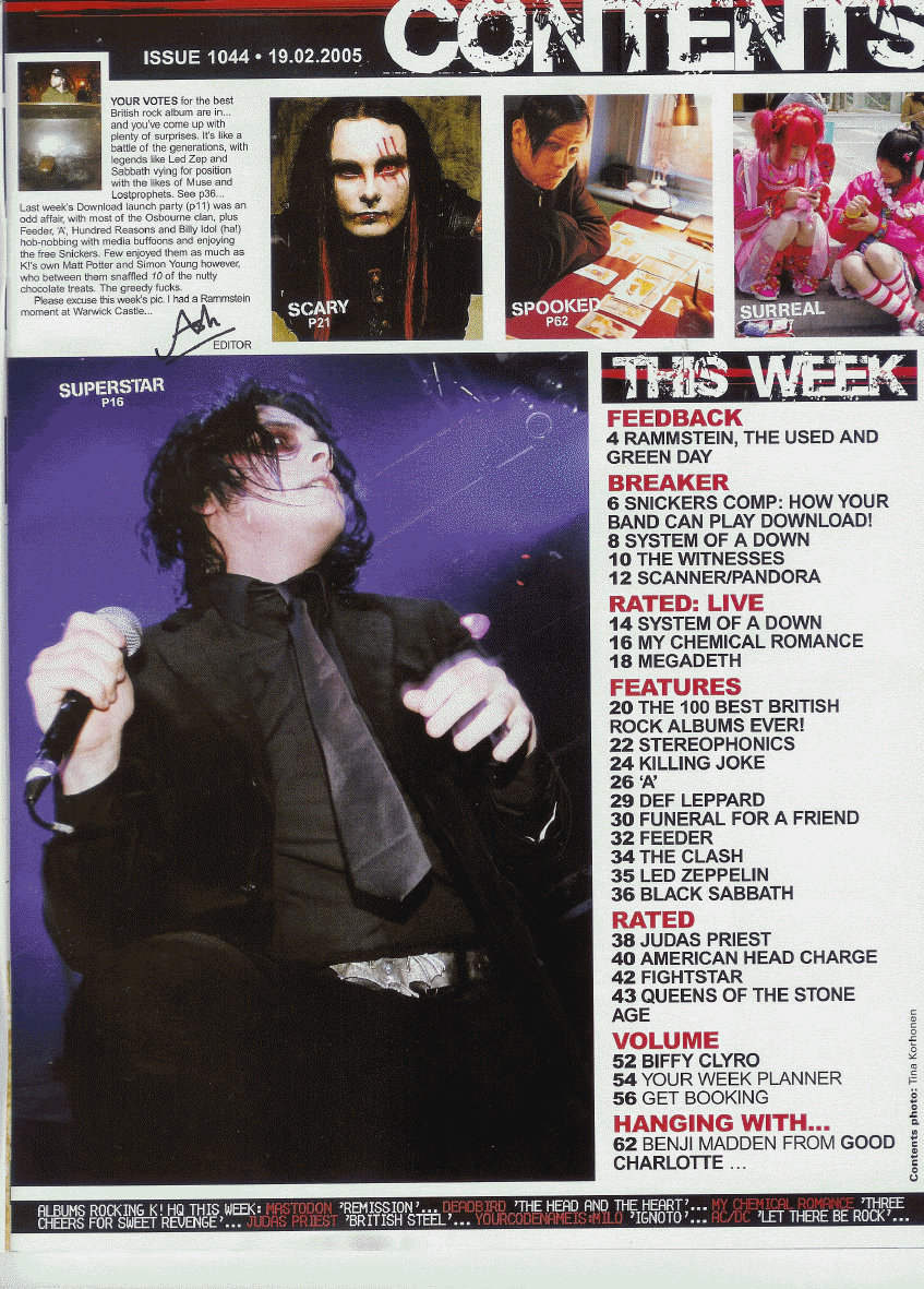 Another interesting technique is the use of contrasting colours across the entire page, this is evident in the text, backgrounds and even in the pictures of Artists and bands.